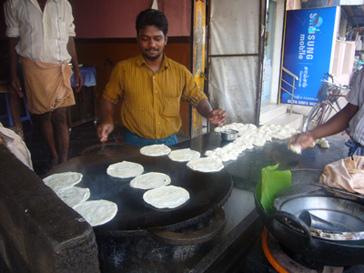 Nous avons mangé un excellent tikka de poisson et de simples crevettes grillées, accompagnés de riz, légumes. Ensuite, nous avons visité la ville que j’apprécie déjà. Malgré quelques camelots insistants, elle est plutôt calme et détendue. De la taille de Bulle, quoiqu’un peu plus touristique. Nous ferons l’achat de quelques souvenirs pour nos proches au bazar dans les prochains jours. Je me réjouis de visiter plus amplement la ville demain. J’ai trouvé quatre café internet. Pour une raison que je ne comprends pas (sécurité ?), je ne peux utiliser mon propre ordinateur dans aucun. J’ai même essayé de le câbler, la connexion ne fonctionnait pas et aucun hôtel ne possède de wifi. Cela ne me fera pas de mal, et cela confirme mon impression positive selon laquelle Kanniyakumari répond à mes besoins actuels.