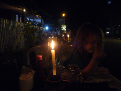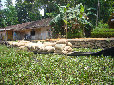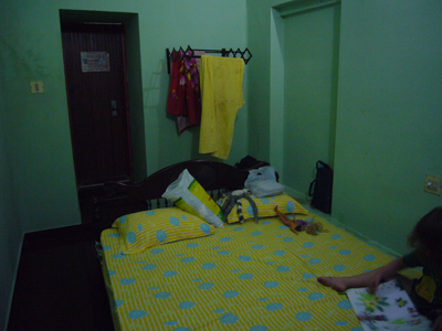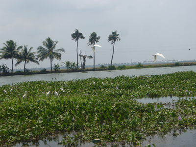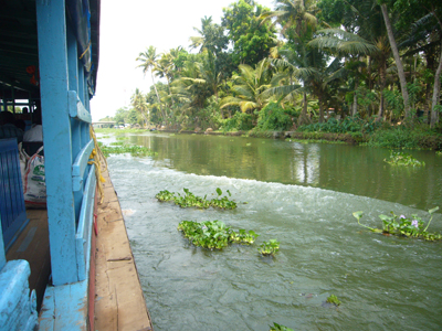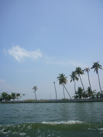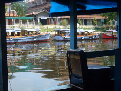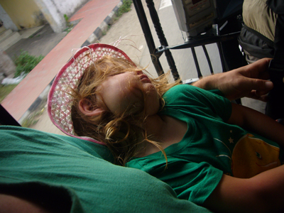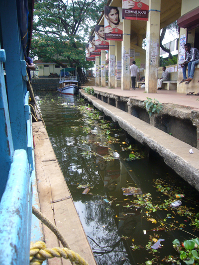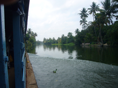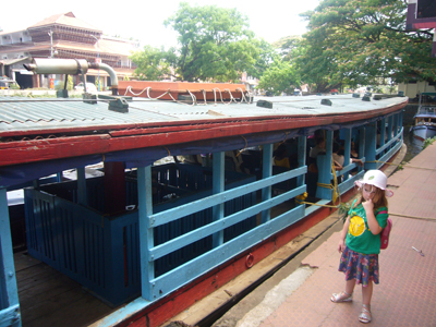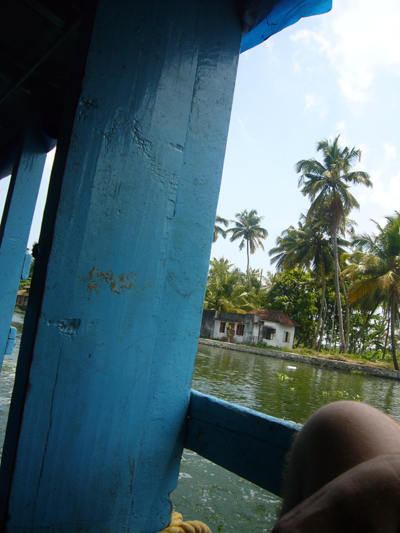 Cerise m’a réveillé tôt pour que je joue avec elle. Mes options professionnelles m’avaient travaillé et quelque peu empêché de passer la nuit réparatrice que j’escomptais. J’ai embrayé mon sourire pour la journée et joué à la Barbie avant d’aller manger. Après nous être lavés, nous sommes partis visiter les deux temples voisins. Le premier avait l’air assez récent, était tout coloré, Cerise l’a adoré. L’autre temple, vis-à-vis, était moins criard et suintait plus. Nous nous y sommes arrêtés quelques minutes sur la dalle avant de sortir. Les dames tentaient de refiler au moins une des deux bananes contenues, avec les habituelles fleurs et pigment rouge, dans le « paquet » de bénédiction offert contre l’offrande des croyants. Ensuite, nous avons embarqué à bord du ferry de bois peint en bleu clair qui nous a transporté, en compagnie des indigènes, jusqu’à Kottayam. La première partie du trajet était magnifique et nettement plus varié que celui de la croisière depuis Kollam, enchantant. Pour la première fois depuis notre départ, Cerise a joué sur le bateau avec un autre enfant, un garçon d’à peu près son âge. Il y avait eu quelques timides tentatives de jeunes Indiennes et une, plus avancée, d’un petit Français, à la peau d’Indien, qui cherchait de l’attention sur la plage de Varkala. Je lui avais demandé de déguerpir après qu’il ait jeté une deuxième fois, de manière narquoise, du sable sur la tête de Cerise et arraché sa longue vue des mains, refusé de la lui rendre, etc. Cerise parle également plus volontiers aux adultes depuis quelques jours, elle leur raconte ses histoires, notamment depuis que nous avons acheté hier son cahier de fleurs à colorier. Cette fois, j’ai eu le temps de détailler le serpent d’eau qui se tenait coi contre le mur du canal, blanc en bas, verdâtre sur le dessus et tacheté comme une truite. L’hélice du bateau a percuté la terre ou autre chose et nous nous sommes arrêtés quelques minutes pour réparer l’avarie. Quelle paix m’a envahie à l’arrêt du moteur. Sur une eau calme, au milieu de nulle part, entre les cocotiers et les rizières. J’aurai volontiers pédalé les quelques kilomètres restant pour maintenir cette langueur éternelle au royaume des oiseaux. Nous avons vu les habituels blancs, les noirs communs, en quantité incalculable, et aussi des canards, quelques blancs à bavettes brunes, quelques spécimens d’espèces moins fréquentes et … un martin-pêcheur ! Il m’a semblé le reconnaître avec son long bec, sa cape bleue sur son poitrail orange, à épier l’onde du canal de Kottayam. J’ai toujours cru qu’il était extrêmement rare de pouvoir en observer, peut-être ai-je vu ce que je souhaitais ? Le rickshaw-wallah qui nous a chargé à l’embarcadère était aussi souriant que les deux employés d’Indian Railways, plus grand employeur du monde, à qui je me suis adressé. Et c’était encore pire à la consigne des bagages. Je me suis efforcé de présenter mon meilleur sourire et mon air le plus enjoué à Kottayam et à ses habitants, qui avaient des têtes d’enterrement. La ville, traversée en rickshaw, m’a fait penser à Lausanne, avec ses montées et ses places, ses quartiers. Nous y avons profité de jus de fruits, de samosas et de shakes, cerise pour Cerise et noix de cajou pour moi. Le voyage en train a été bref en compagnie de Thomas, habitant d’Ernakulam, au discours passionnant. Cerise est jalouse quand je parle à d’autres personnes. Nous avons pris un nouveau rickshaw de la gare d’Ernakulam Town jusqu’à Fort-Cochin. Cerise a dormi presque toute la course de près de trente minutes vrombissante et pétaradante. Elle s’est complétement abandonné dans mes bras pour mon plus grand bonheur. Ses jambes vibraient quand le rickshaw était à l’arrêt, je ne sais pas comment elle a fait pour s’endormir. J’ai bien du la réveiller, une fois arrivée à l’auberge de la princesse, rue de la princesse, à Fort-Cochin, là où notre périple a commencé, il y a vingt jours.