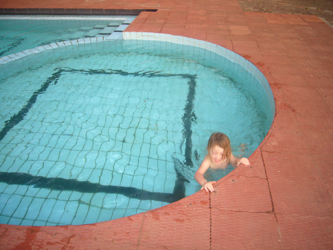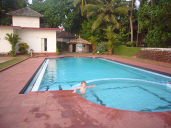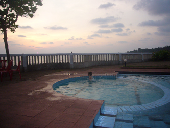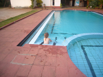 A la fin du match, Cerise ne voulait toujours pas quitter la chambre … Je me suis alors souvenu de la piscine, dont nous avons profité sous le coucher du soleil, avant de manger sur la terrasse, en bord de mer, enfin, un peu plus haut. Cerise voulait à nouveau un riz sans rien pour y ajouter du sel et du poivre. Elle a goûté et aimé le batoora et le parantha, des types de pains plats, comme les nan et les chappatis des autres jours. Elle continue à refuser de goûter toutes les sauces, elle qui aime tellement le curry ! Je ne la force pas, je me dis qu’il y a une raison à ça et qu’elle se connaît mieux que moi et sait mieux ce qui est bon pour elle.