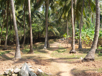 Pour rentrer, ce fût une séance cardio, sous un soleil de plomb, avec Cerise sur les épaules, dans des ruelles grimpant vers le village. Le bus que nous y avons attendu était un de ces bus comme j’aime, plein de vie, d’odeurs, sauf que celui-là était plus que bondé et pas très agréable pour Cerise, qui s’est retrouvée assise entre deux inconnus pour une partie du trajet. Nous avons pu voir la ville de Kannur de jour, jusqu’à la gare routière. Nous y avons bu des jus de raisins (une variété très sucrée de petits raisins), mangé des samosas, une orange, des pâtisseries et trouvé l’horaire du bus pour Kalpetta demain. En rentrant à l’hôtel, nous avons assisté à une scène animalière inédite : une fouine pourchassait un crapaud paniqué !